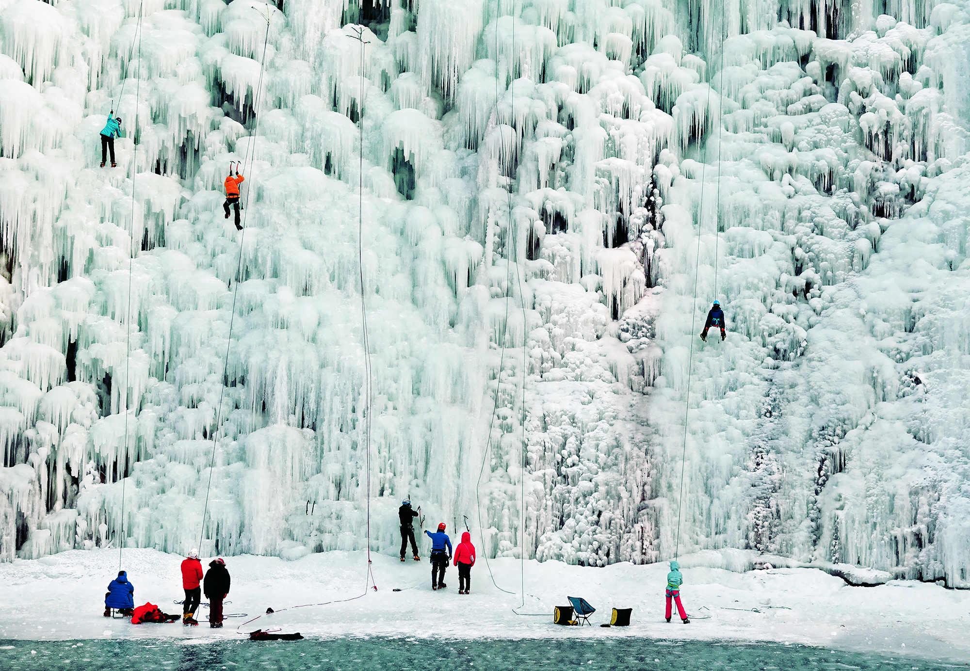 2021年1月11日,黑龙江省牡丹江市,被誉为“中国悬崖跳水第一人”的狄焕然从结了冰的镜泊湖吊水楼瀑布飞跃而下。经过38年的连续挑战,如今狄焕然表演的悬崖跳水已成为镜泊湖吊水楼瀑布的一道风景。
