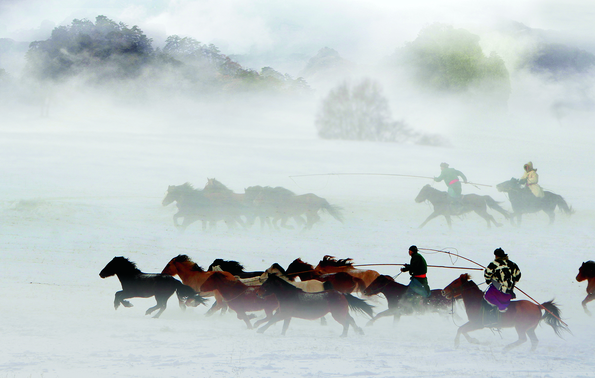 People race horses on the Ulan Butong grassland in Chifeng City, Inner Mongolia Autonomous Region, on December 11, 2020.