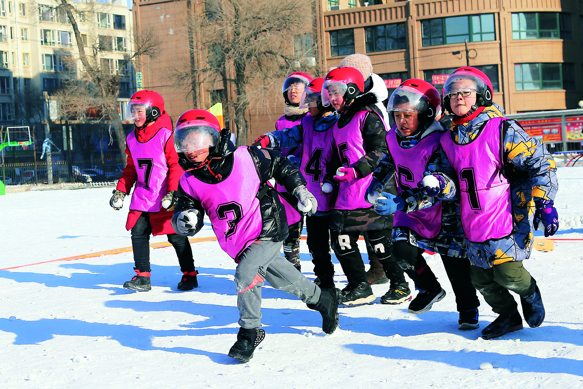 2022年1月15日,吉林省白山市,中小学生在体校参加雪合战比赛。为进一步推广普及校园冰雪运动,浑江区青少年活动中心开展了丰富多彩的冬季冰雪运动