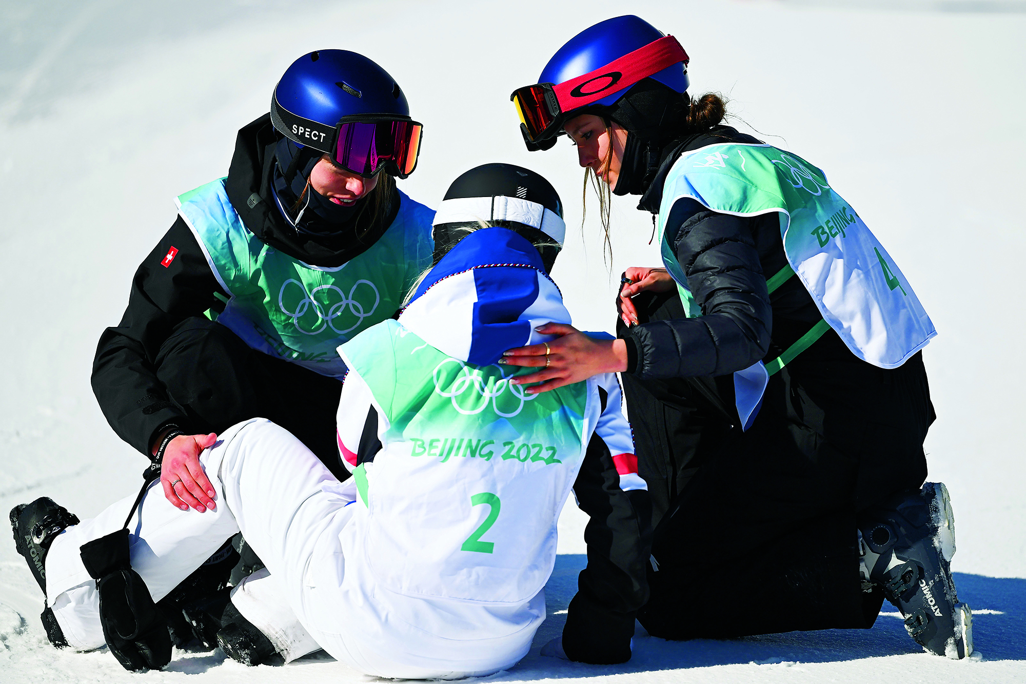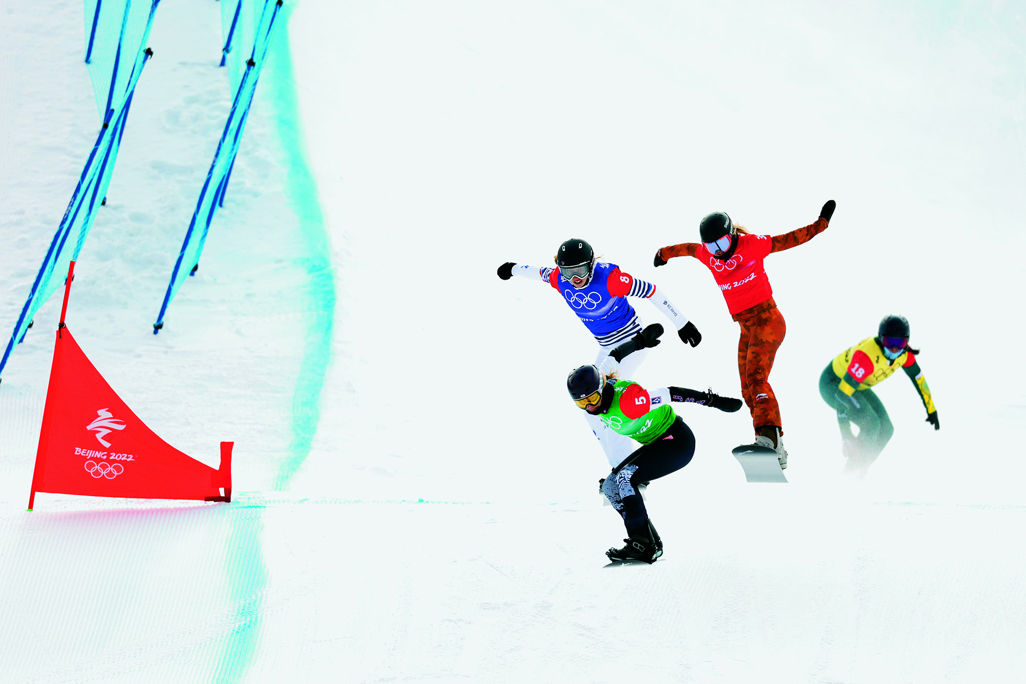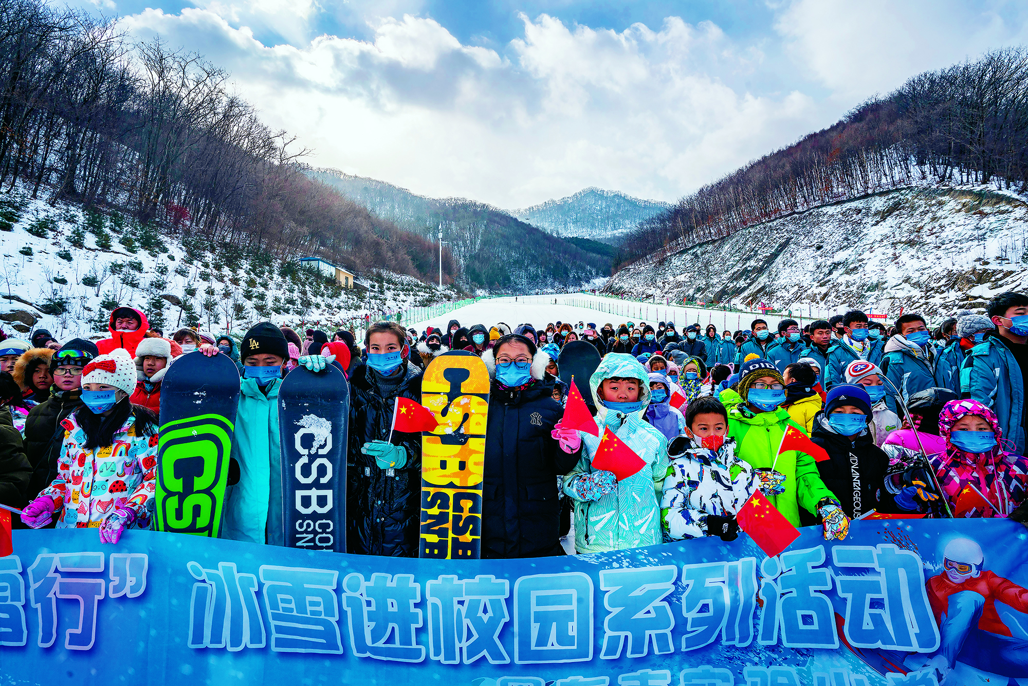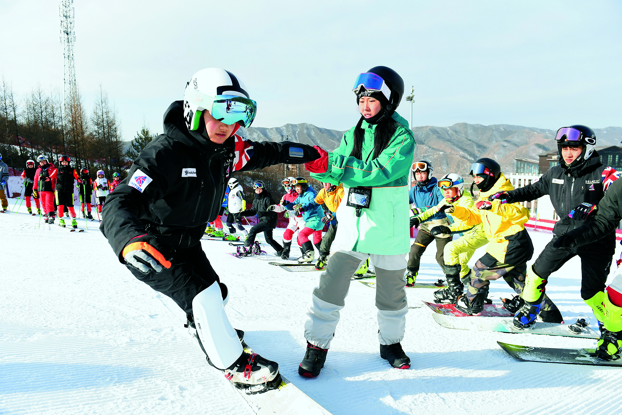 Students from Xuanhua No. 2 Middle School learn to snowboard in Zhangjiakou, Hebei Province, on December 15, 2021. In October 2015, Zhangjiakou Youth Winter Olympic Sports School was founded under the management of the Xuanhua school and has cultivated many top athletes for the Hebei provincial and national teams.