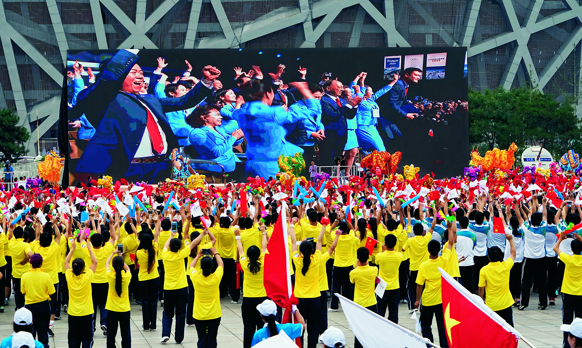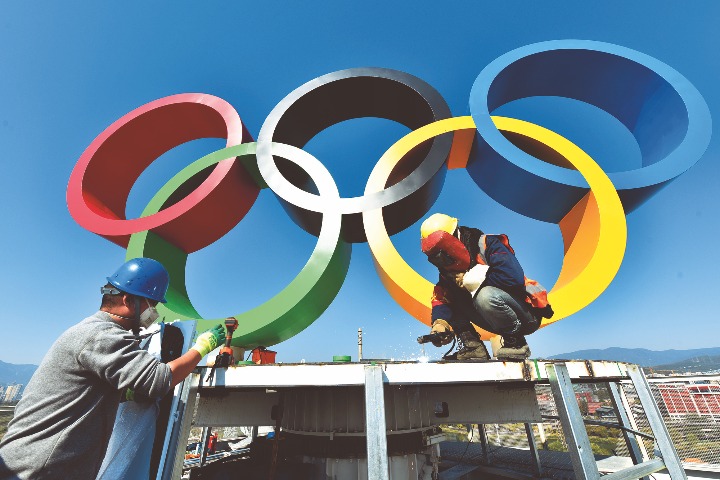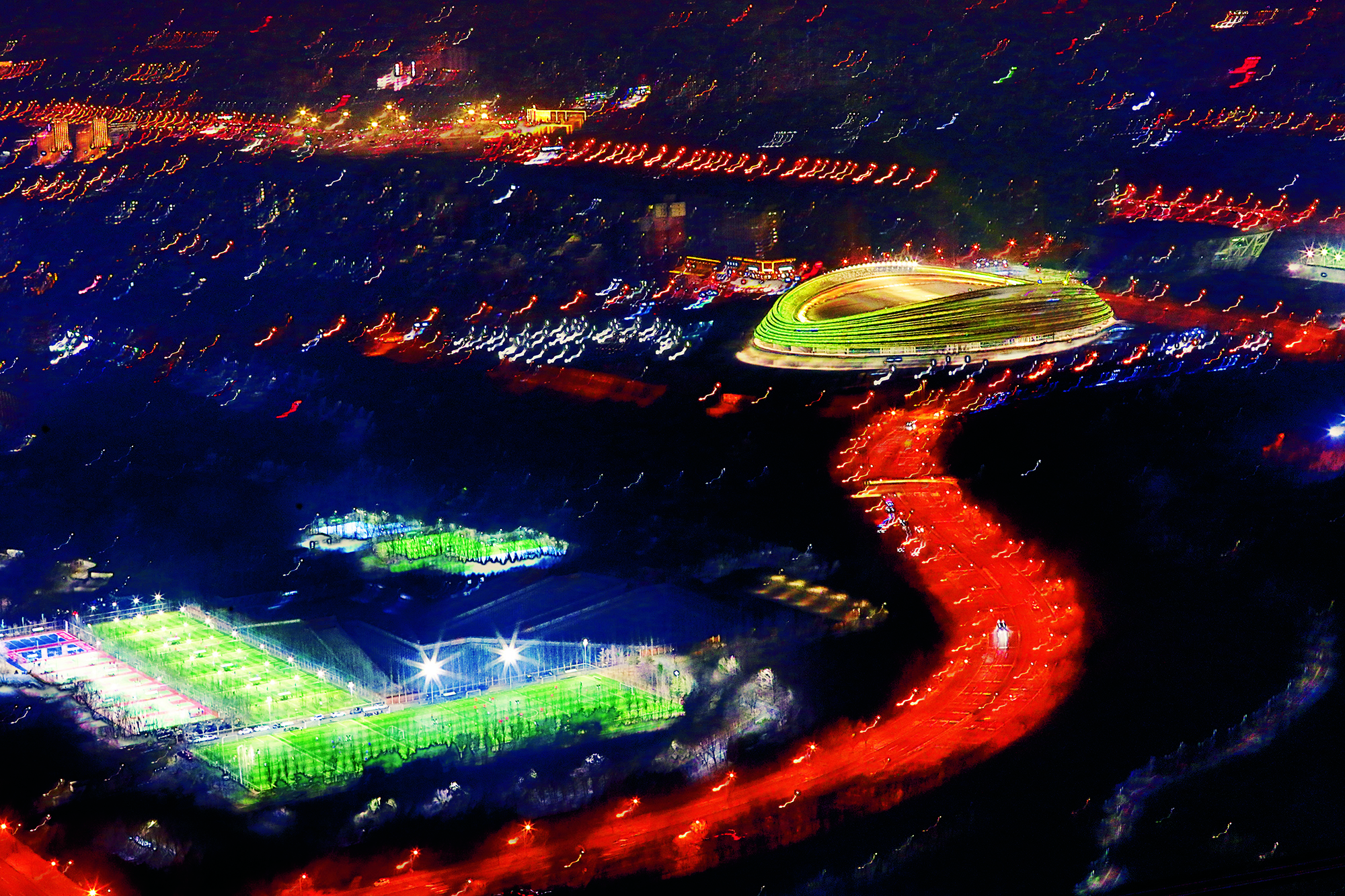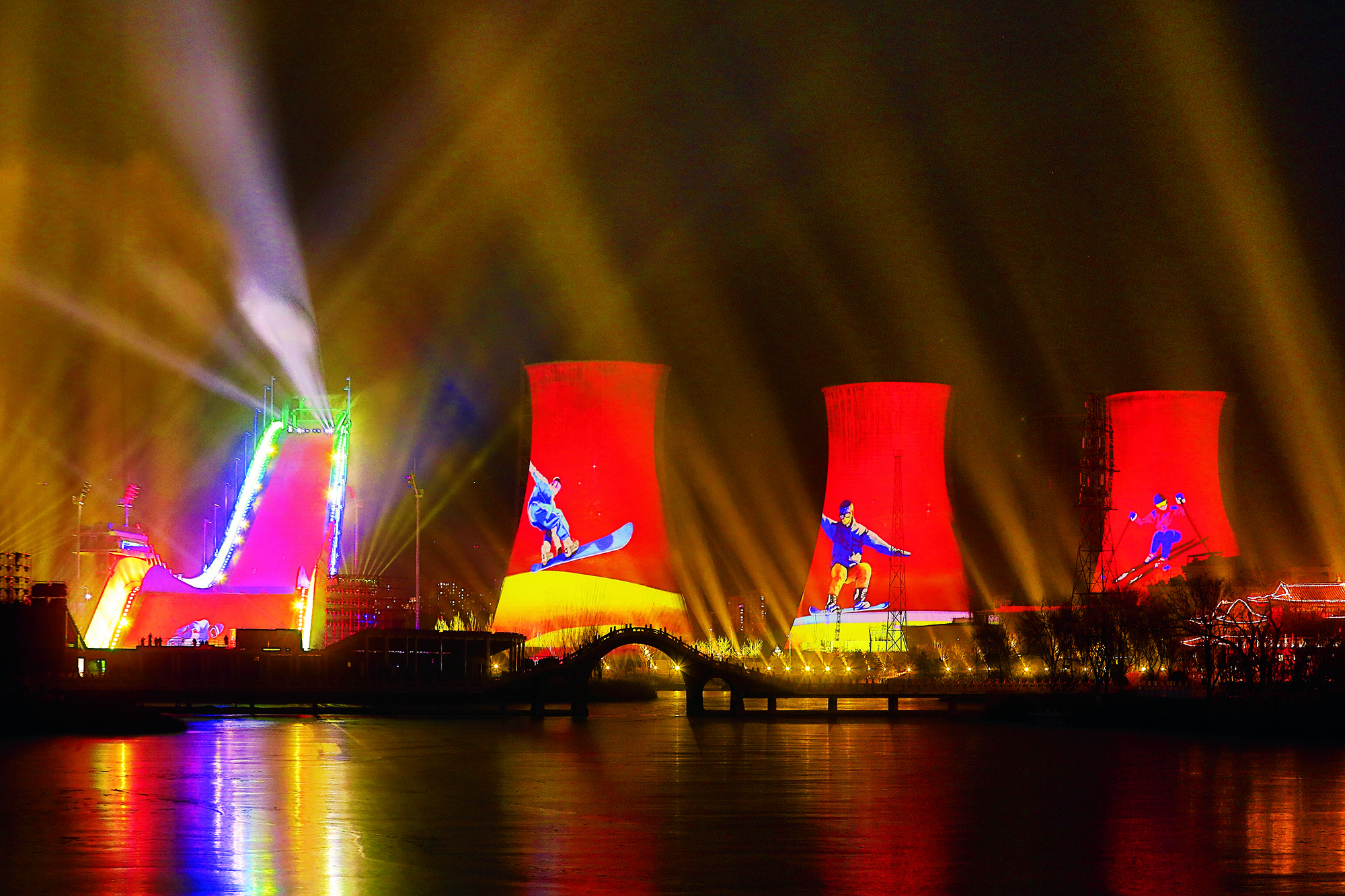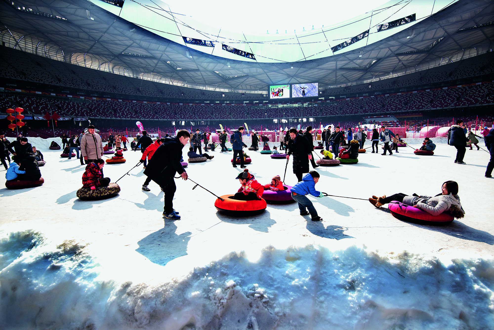 People enjoy ice and snow activities at Beijing’s National Stadium on February 18, 2018.