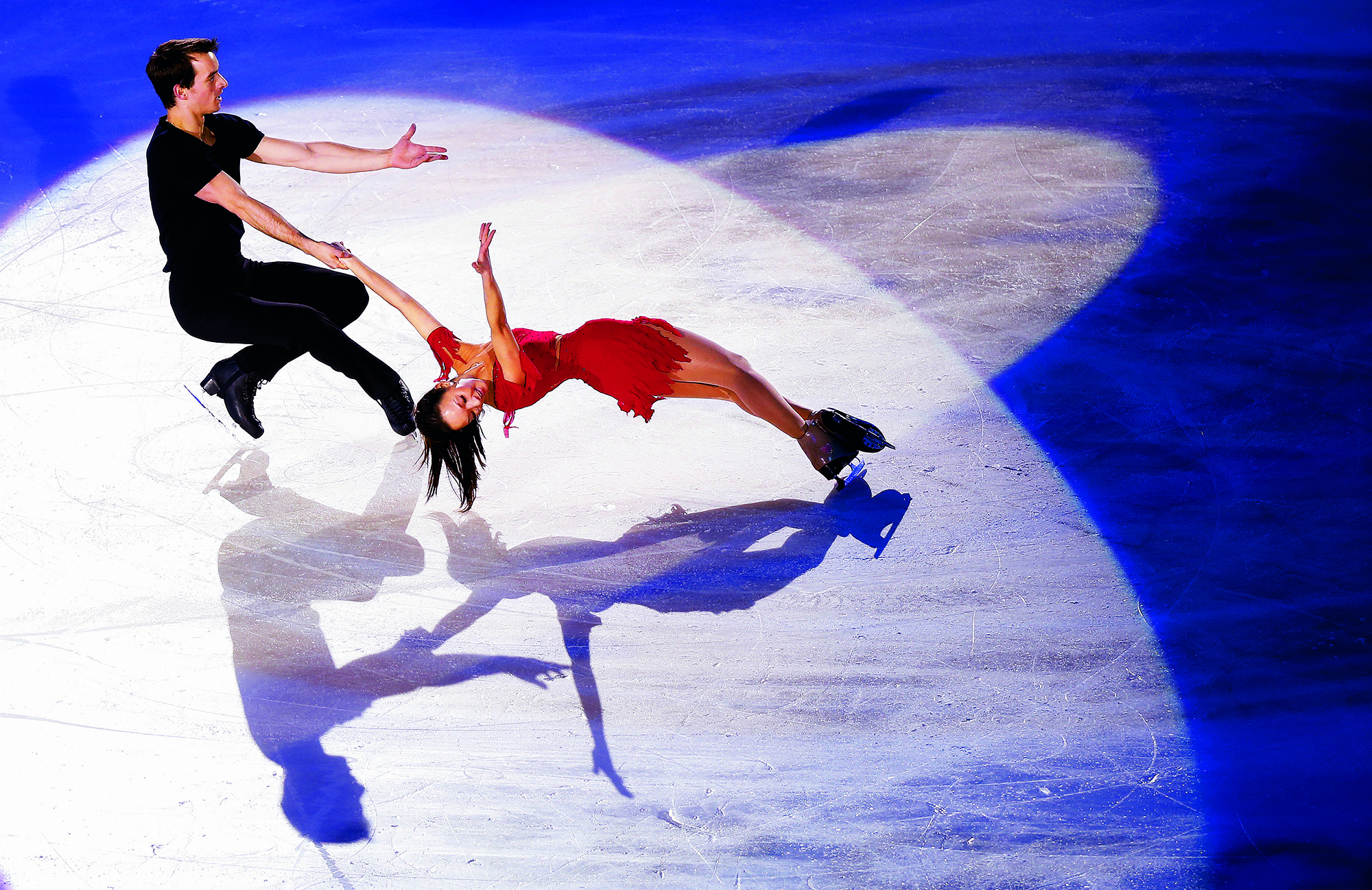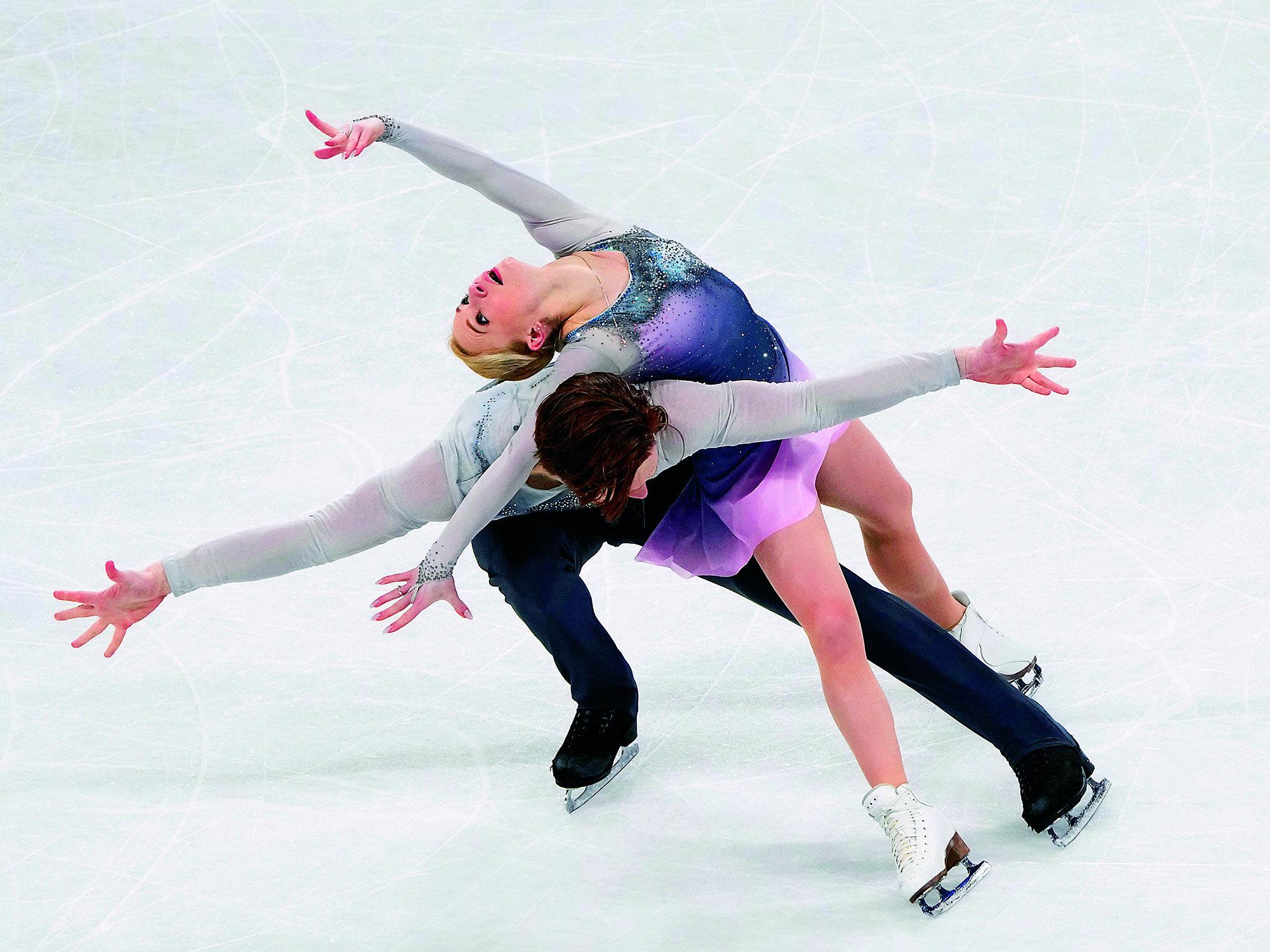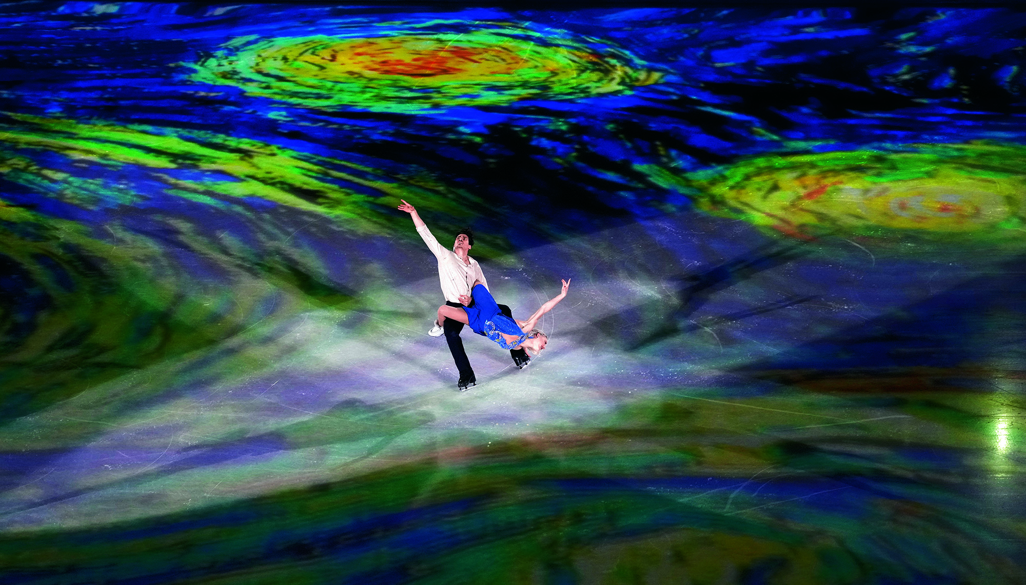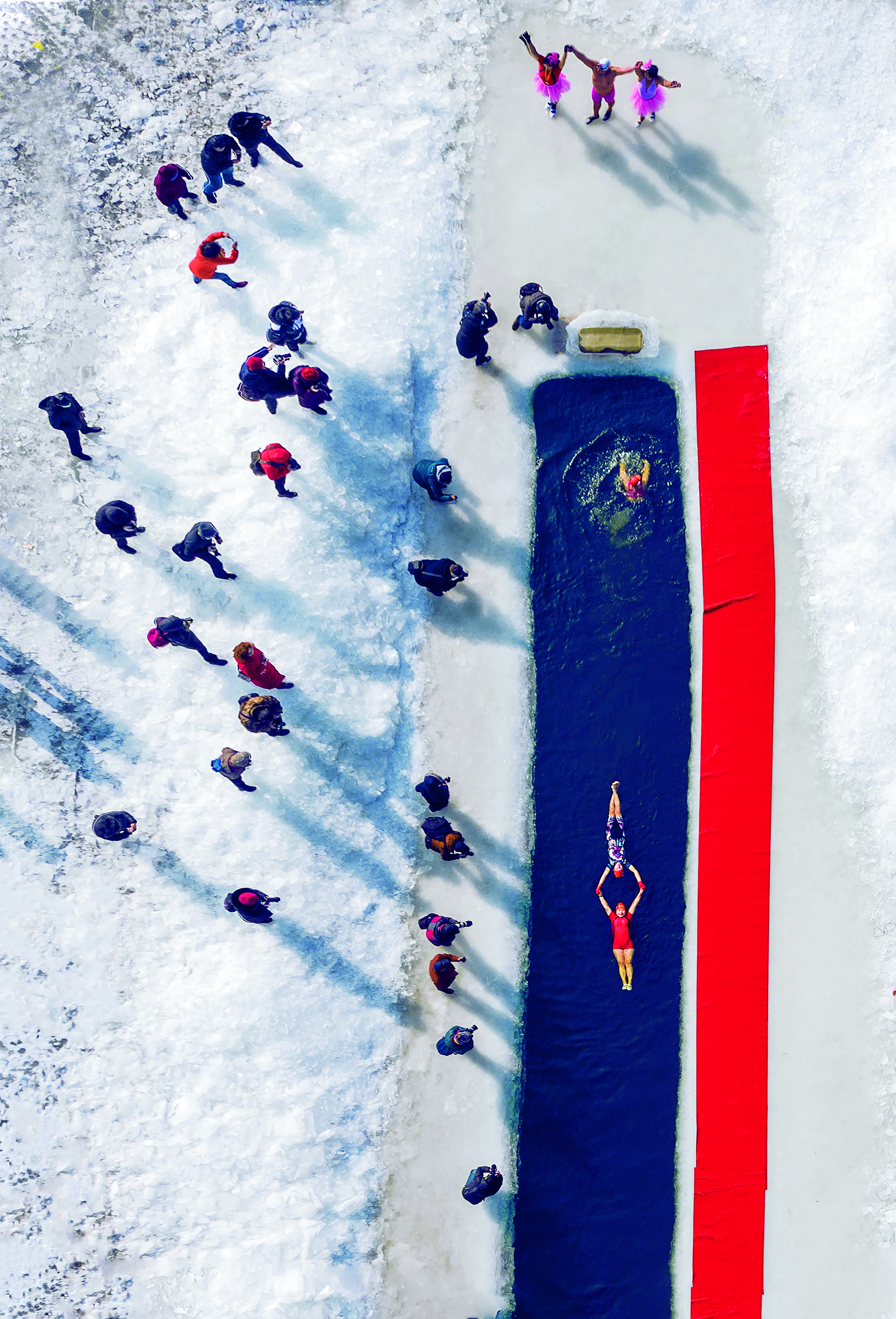 Winter swimmers display a ballet dance formation in