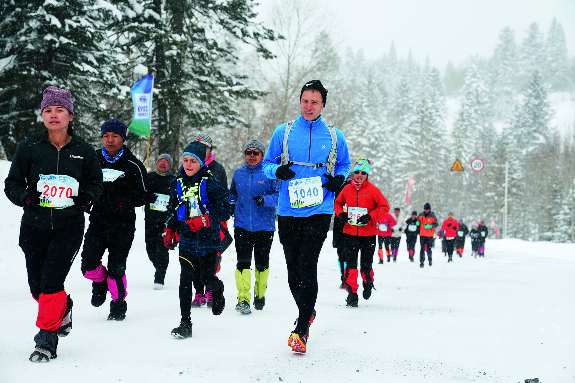 2019年4月1日,吉林省,1500人参与了中国长白山国际林海雪地马拉松节,人们迎着飞舞的雪花感受户外雪地马拉松的独特魅力