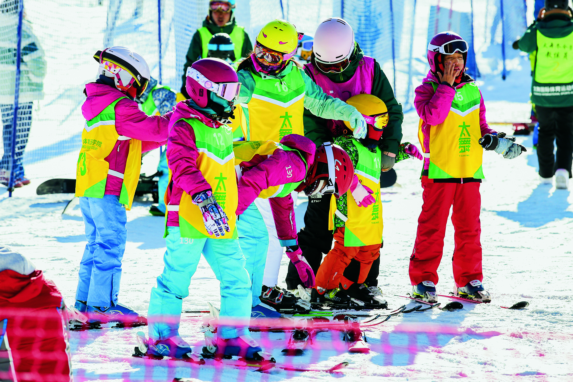 2020年1月22日,河北省张家口市, 孩子们在崇礼多乐美地滑雪场初次 体验滑雪