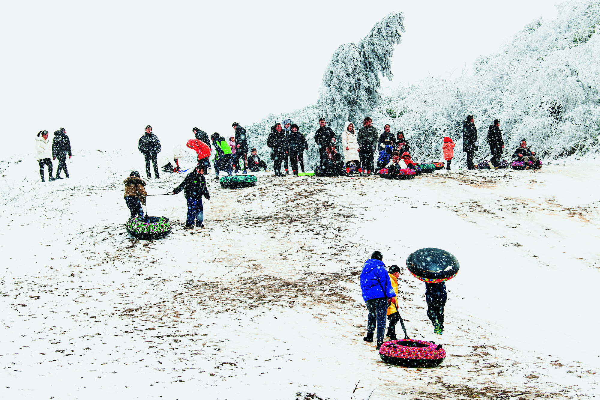 2021年1月1日,贵州省六盘水市,梅花山国际滑雪场游人如织
