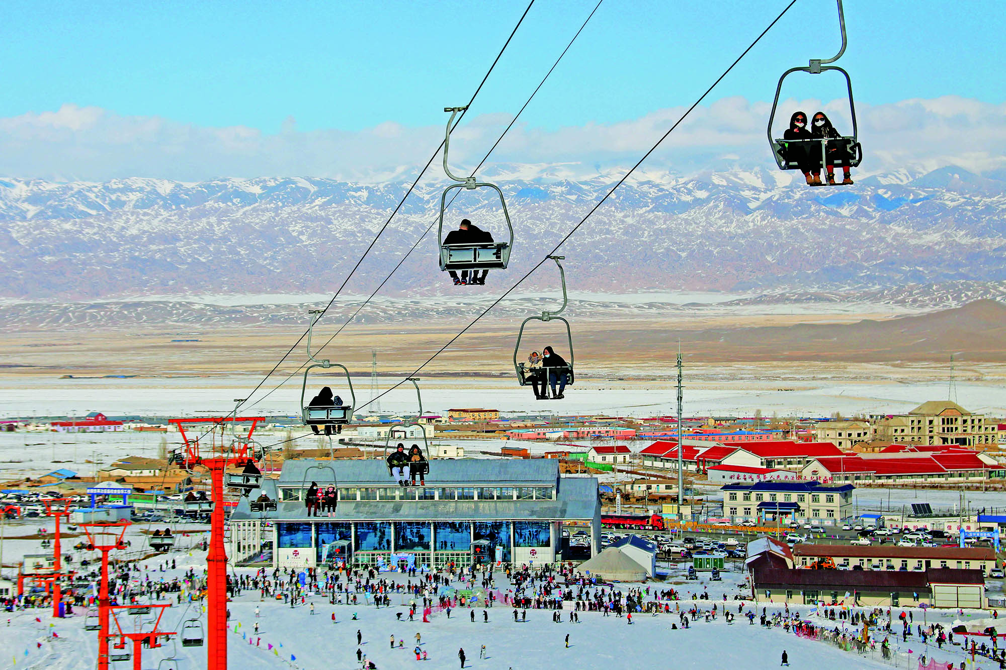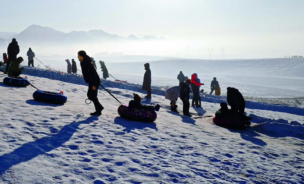 Local residents enjoy snow games at Dongshan Ski Resort in Tianshan District of Urumqi, Xinjiang Uygur Autonomous Region, on January 3, 2022.