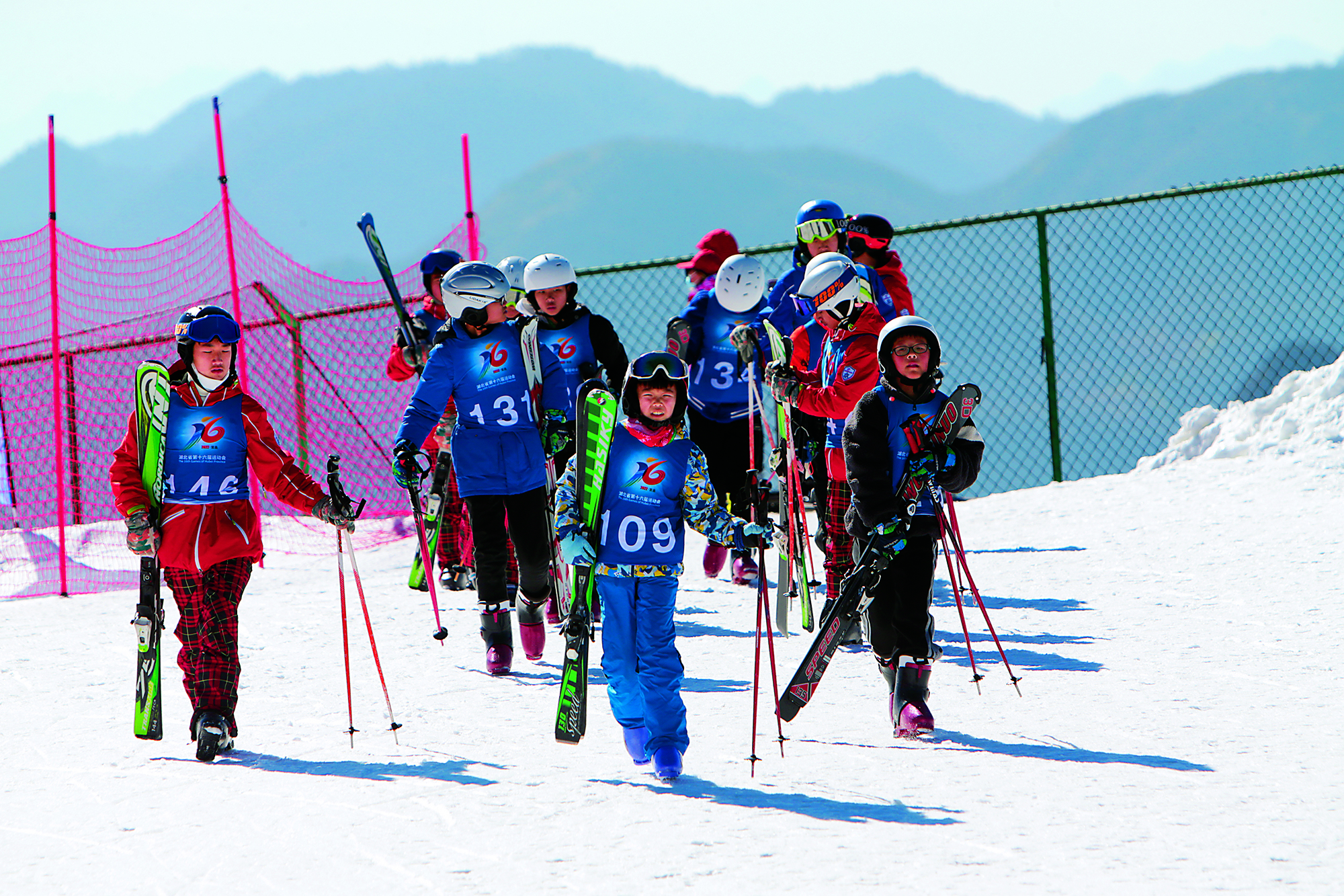 A coach instructs young participants on skiing and safety at Mount Mingyue Ski Resort in Yichun, Jiangxi Province, on