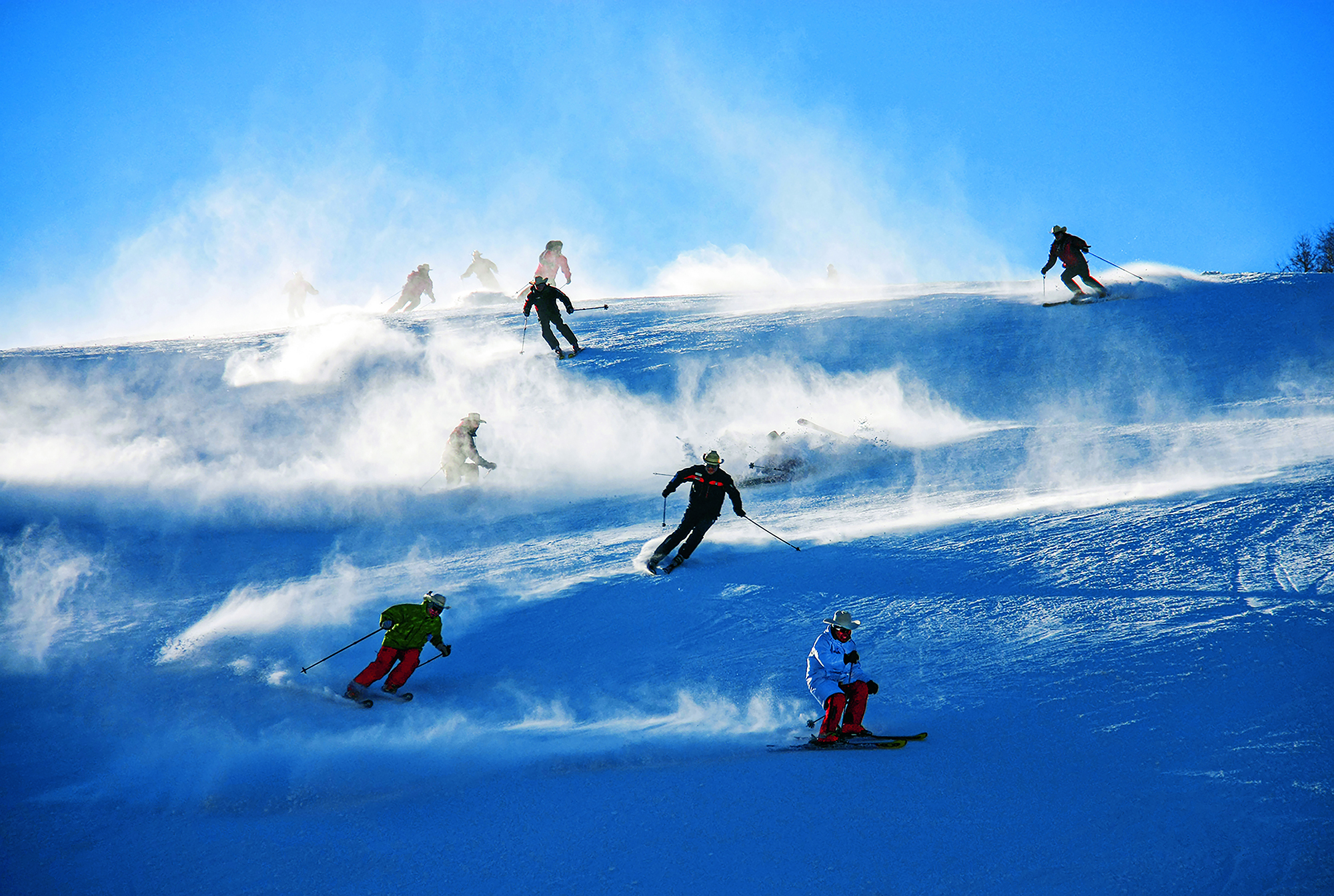 2021年12月3日,河北省张家口市,滑雪爱好者在崇礼一滑雪场体验冰雪之乐