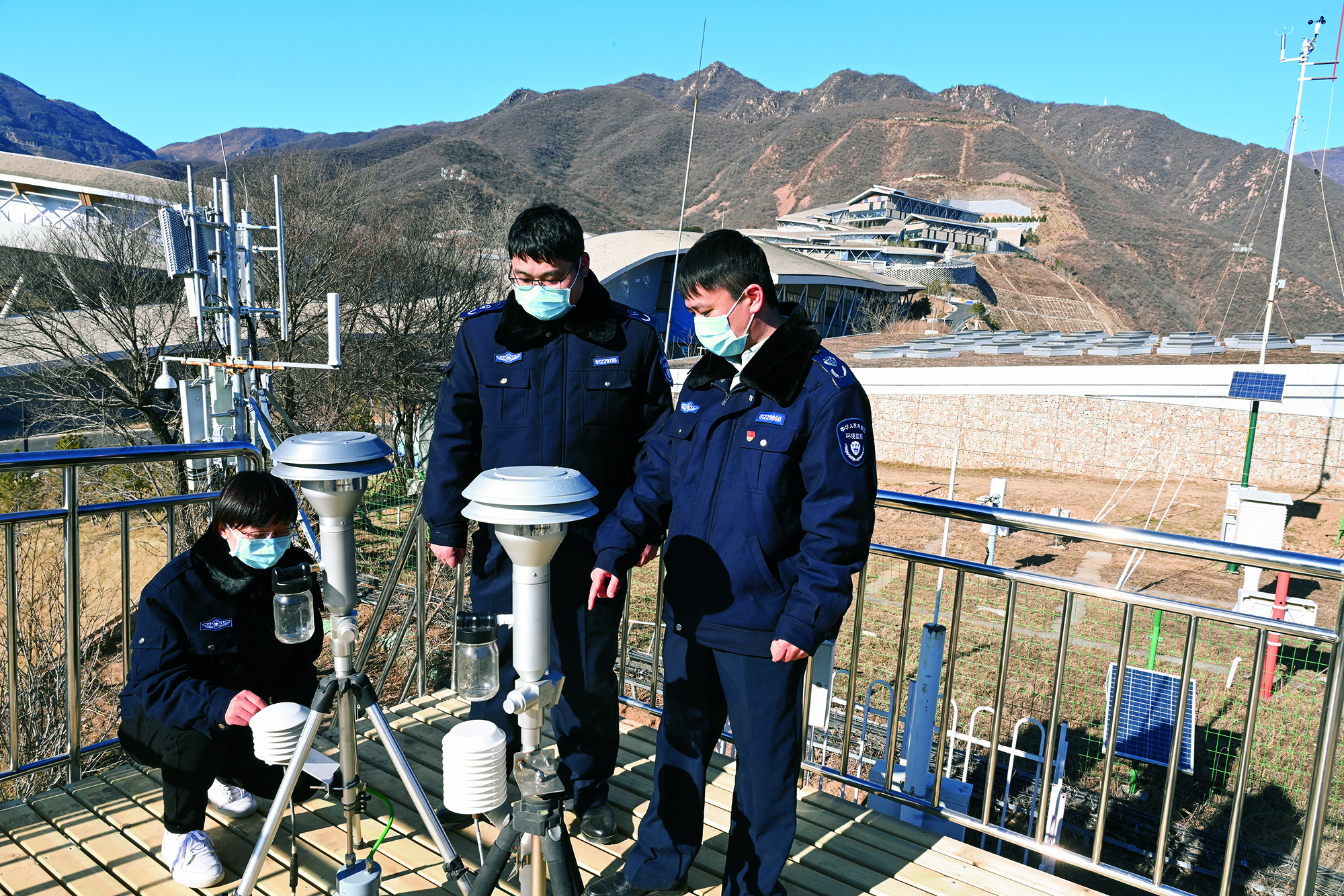 Staff of an enterprise pose for a group photo during team-building activities at a ski resort in Beijing on January 7, 2018.
