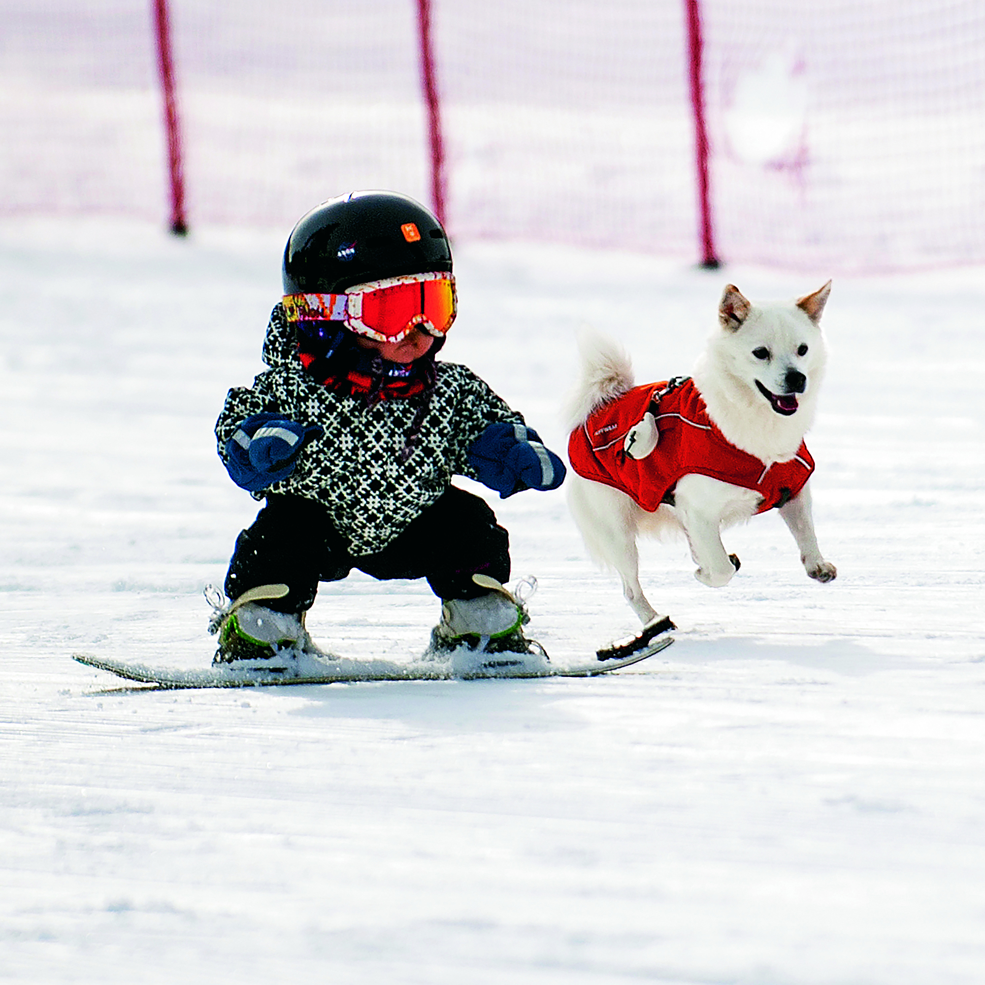 Wang Yuji practises skiing with her pet dog at Thaiwoo Ski Resort in Chongli District of Zhangjiakou City, Hebei Province, on November 18, 2021. The 11-month-old became an Internet hit after her short video of skiing was uploaded on social media.