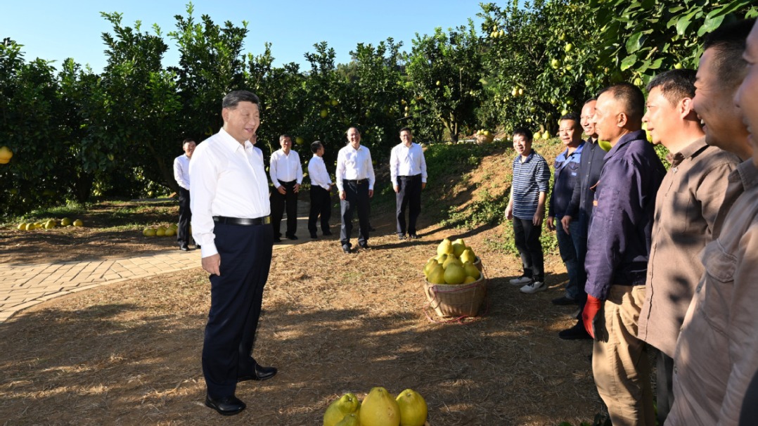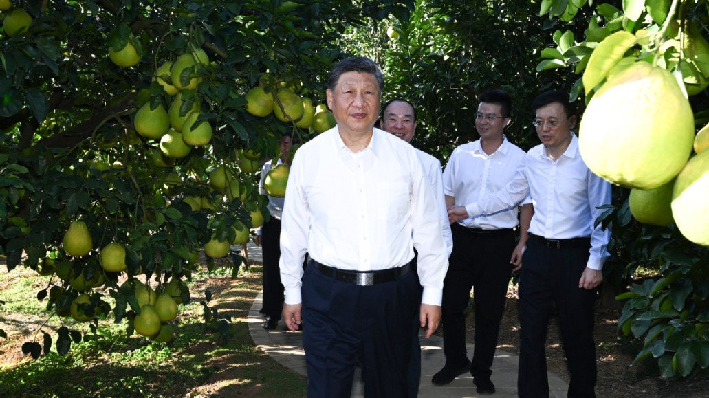 11月7日下午,习近平总书记在广东省梅州市梅县区雁洋镇考察南福金柚种植基地,了解当地推进乡村全面振兴等情况。