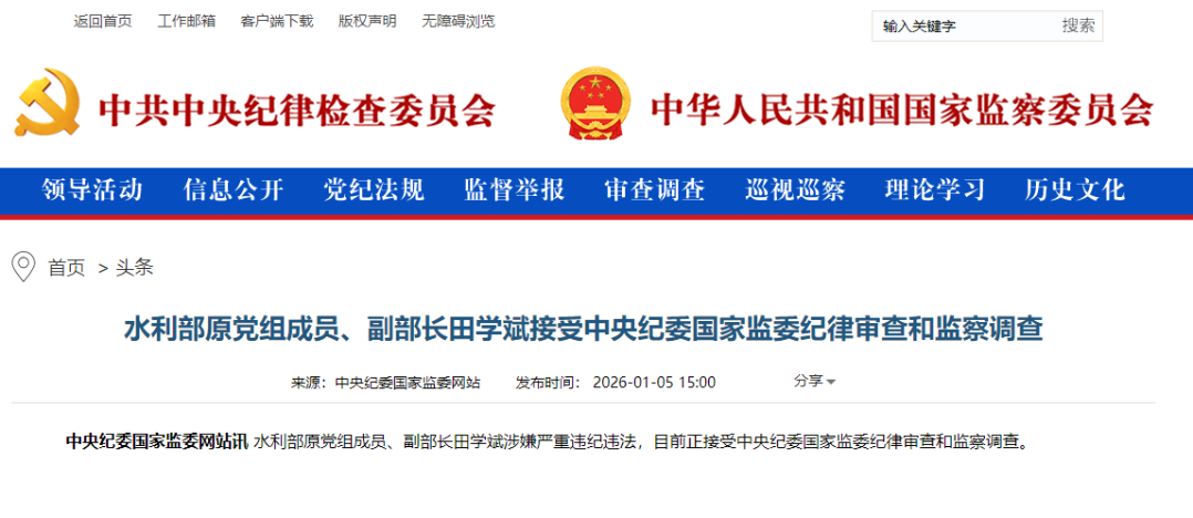 据中央纪委国家监委网站消息,水利部原党组成员、副部长田学斌涉嫌严重违纪违法,目前正接受中央纪委国家监委纪律审查和监察调查。 查看详情