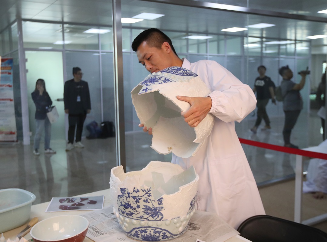 近期,圆明园启动“修复1860”,将持续修复圆明园出土的文物,公众可近距离去现场观摩。10日下午,在文物修复现场,有6件精品瓷器正在修复中,修复后成品将在圆明园展出,同时进行3D扫描,并收入到圆明园线上数字博物馆。