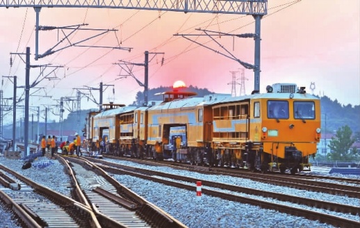 8月14日,黔张常铁路常德市段,中铁三局工作人员正进行线路捣固与稳定作业。该铁路规划线路总长339公里,设计时速200公里。目前,铁路建设接近尾声,将于9月进行联调联试,计划年底通车。 三湘都市报·华声在线记者 李健 通讯员 王毅博 摄