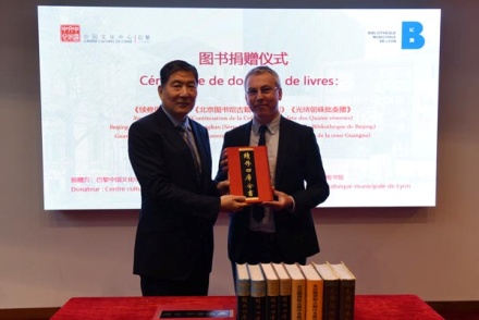 中国日报网10月30日电 2019年10月21日,巴黎中国文化中心向里昂市立图书馆捐赠《续修四库全书》、《北京图书馆古籍珍本丛刊》及《光绪朝硃批奏摺》等三套精装丛书,捐赠仪式在中心隆重举行。