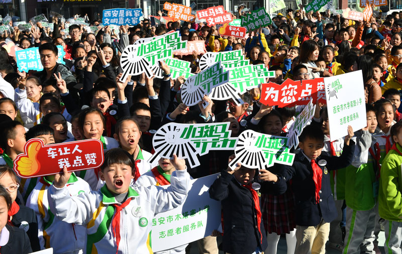 “车让人,人守规,小斑马在行动”活动将持续开展,在西安喜迎十四运的背景下,为提升西安志愿服务品牌的影响力,通过志愿者的行动,营造“车让人,人守规”的交通文明新风尚,扩大全国文明城市形象宣传,构建“学校、社会、媒体”全方位、长期性城市交通文明志愿服务生态体系。(记者 袁景智摄)