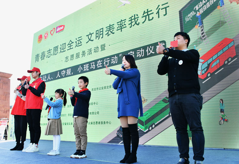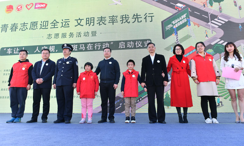 11月10日,由共青团西安市委、西安市委文明办、896汽车调频、西安市交警支队、西安市青联、西安市少工委联合主办,由西安市青企协、西安市志愿者协会、陕西小蜜蜂青少年职业体验中心联合承办的“青春志愿迎全运,文明表率我先行”志愿服务活动暨“车让人、人守规,小斑马在行动”启动仪式在西安市大雁塔北广场启幕。千名来自西安各行业代表、青年志愿者、“小小志愿者”汇聚这里,表示共同参与国家中心城市建设、全力投身助力十四运成功举办为示范,引领和带动广大团员青年以及志愿者积极投入全运会各项志愿服务活动中去,营造出“青春志愿迎全运,文明表率我先行”的浓厚氛围。