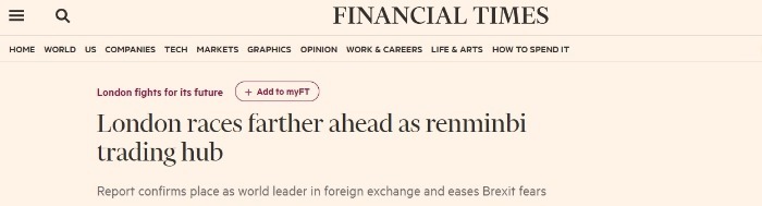 据英国《金融时报》报道,伦敦正逐渐与对手拉开距离,巩固其头号离岸人民币交易中心的地位。这缓解了人们的担忧,即英国脱欧的影响可能威胁到伦敦作为全球主要外汇中心的地位。