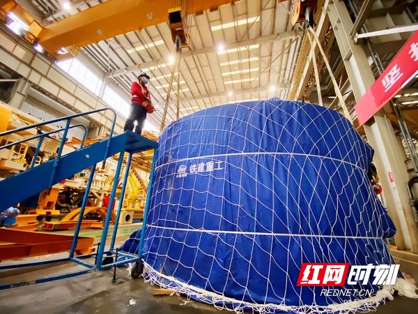 2月10日上午,在铁建重工长沙第一产业园内,一台出口土耳其的盾构机打包完毕,工人们正在进行装车作业,设备即将发往土耳其参与当地隧道工程施工。