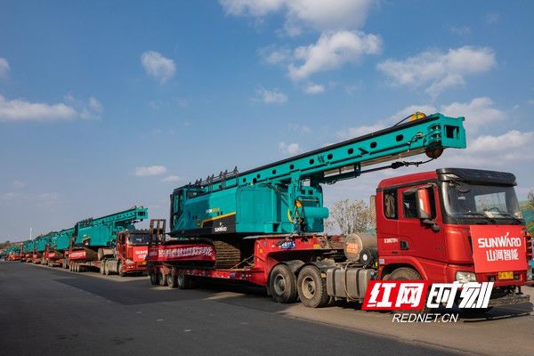 2月13日上午,19辆满载山河智能各类装备的运输车,依次列队,“静悄悄”地驶出山河智能厂区大门,它们将发往国内广东、陕西等省,以及海外的以色列、印度、菲律宾、泰国、柬埔寨等地,为新冠肺炎疫情结束后各地的建设热潮做好准备。