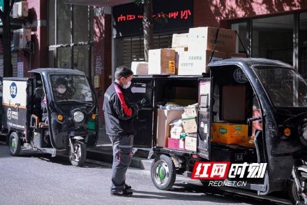 长沙大街小巷,物流行业“满血复活”,疫情期间大量消费需求转向网购,快递员工作量加大。
