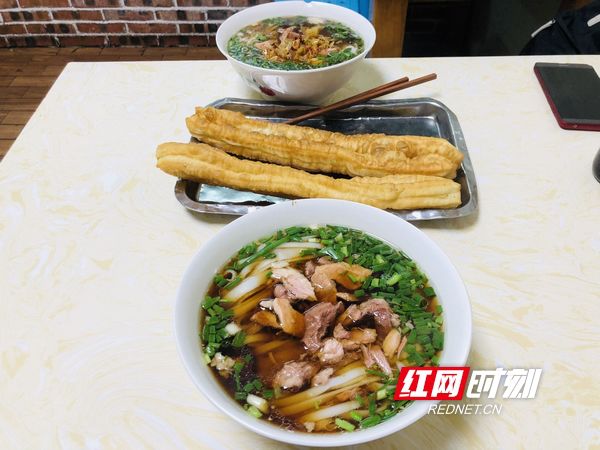 鲜美的汤头,配上嫩滑的肉丝,再来两根油条,这就是唤醒长沙人民的简单幸福。