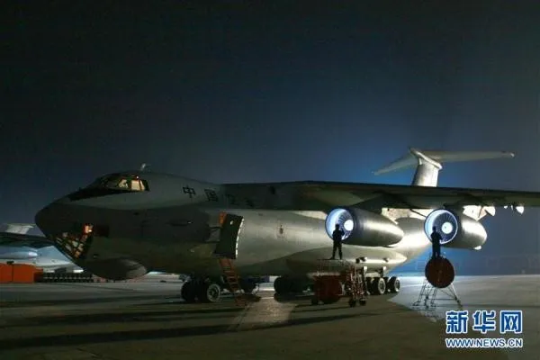 2月12日,中部战区空军航空兵某团机务人员快速完成夜间紧急空运机务准备。新华社发(胡科 摄)