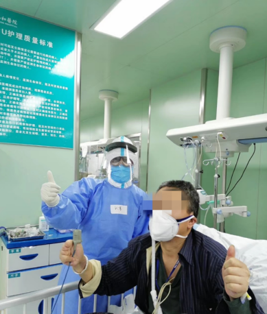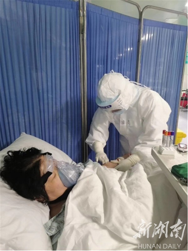 在隔离病区,谭芳工作的病房是任务最艰巨、感染风险最高的ICU重症监护室,照顾的大多是无法自主呼吸的重症病患。刚来到这里时,长时间不能吃喝连续工作,再加上密不透风的防护服、护目镜和口罩让谭芳很不适应,几次因缺氧导致呕吐。
