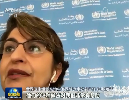 世界卫生组织东地中海区域办事处副主任 拉娜·哈吉:我们在伊拉克首都巴格达同中国医疗专家组进行了会面,他们同我们详细分享了他们在中国的病例管理经验,他们的这种做法对我们非常有帮助,中国现在向其他国家派遣医疗专家组分享抗疫经验,对这些国家的疫情防控是非常有帮助的。