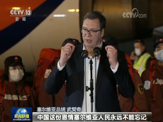 塞尔维亚总统 武契奇:中国这份恩情塞尔维亚人民永远不能忘记,中国向我们展示了什么是患难之交,我们希望将来有机会能够回报中国。