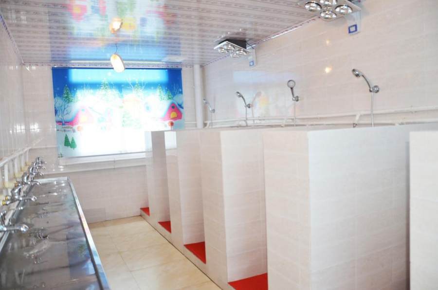 (税友集团为乡村学校援建的新浴室,让孩子们洗上了热水澡)
