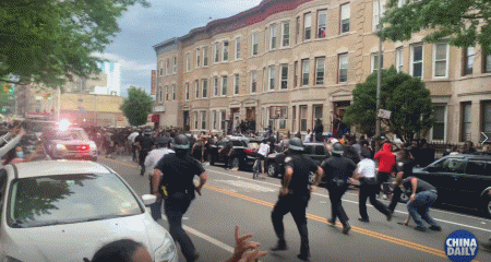 “No justice, no peace!No justice, no peace!” 没有公平,就没有和平! “Black lives matter! Black lives matter!” 黑人生命同样重要!