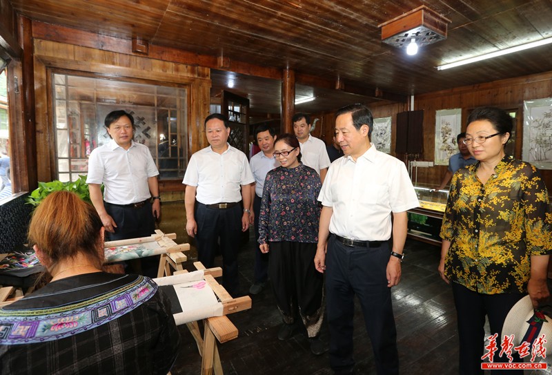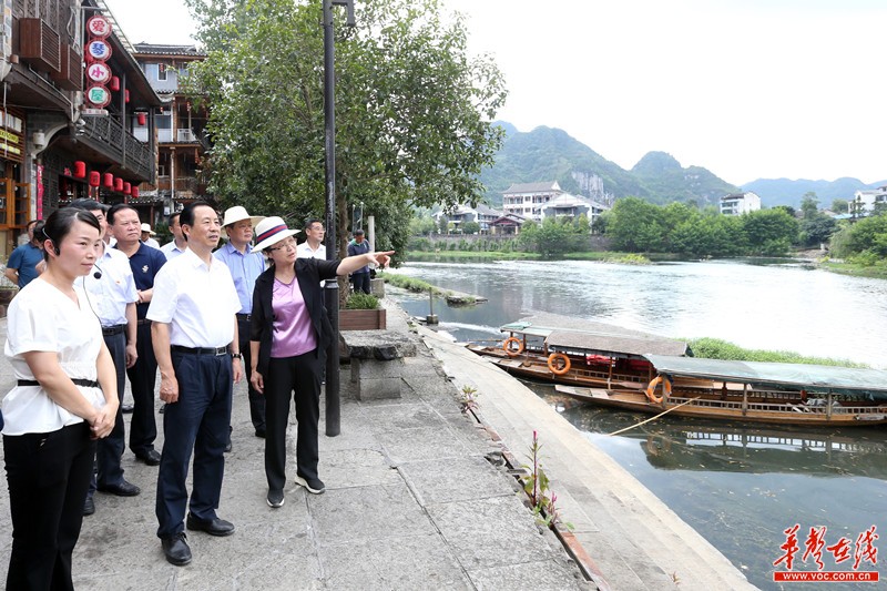 溶洞、天坑、石峰石柱、岩溶峡谷,自然风光雄奇瑰丽;织锦、甩手舞、凉亭桥、土家冲天楼,民族风情魅力独具。在湘西州龙山县,许达哲先后来到桂塘镇、苗儿滩镇等地,考察了乌龙山大峡谷景区和惹巴拉景区,了解当地的特色旅游资源和少数民族文化底蕴,以及文化旅游促进脱贫攻坚、农民增收等方面的情况。许达哲说,湘西山水秀美、文化积淀深厚,要把生态保护放到突出位置,深入挖掘文化内涵,让美丽的自然风光和特色民族文化交相辉映,擦亮全域旅游名片,争创更多知名文旅品牌。