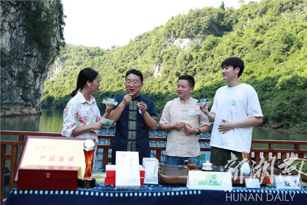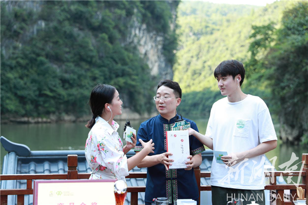 赏青山碧水,品桑植农特。8月24日,“芒果扶贫云超市”在走过了32个县市后,来到了张家界桑植县,首次将直播现场搬到了游船之上,在素有“百里画廊”之誉的茅岩河大峡谷进行现场扶贫助农大直播,为桑植县的桑植白茶茯砖、葛根面条、猕猴桃等爆款好物直播带货,推荐不停。