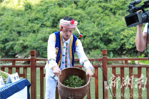 “桑植白茶是国家地理标志产品,通过首创的摇青工艺,将白茶发酵制成白茶茯砖,深受广大茶客喜爱”90后扶贫青年黄骁通过直播镜头踊跃带货。2017年,黄骁从零开始建设起了标准化的白茶加工厂房,大胆进行产品创新,指导当地茶企采用新工艺标准加工白毛茶,并全部进行收购,盘活了桑植毛茶加工企业,使茶农鲜叶收入可增加60%。2019年,黄骁带动茶农增收1400余万元,直接带动贫困对象3500人。