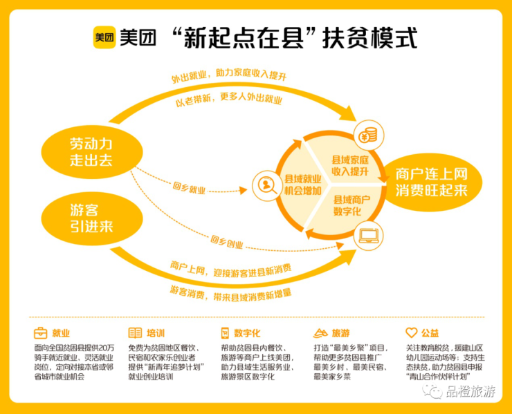 织金县和连续三期扶贫培训,也是美团“新起点在县”互联网+县域扶贫计划的缩影。今年6月,美团升级推出“新起点在县”县域扶贫计划,把扶贫举措落实到县一级,面向贫困县再提供20万个骑手岗位,并通过“劳动力走出去、游客引进来、商户连上网、消费旺起来”的扶贫工作思路,帮助贫困县在就业、培训、数字化、旅游、公益等多个方面实现突破,切实助力各贫困县巩固和提升脱贫攻坚成果、推动乡村振兴。