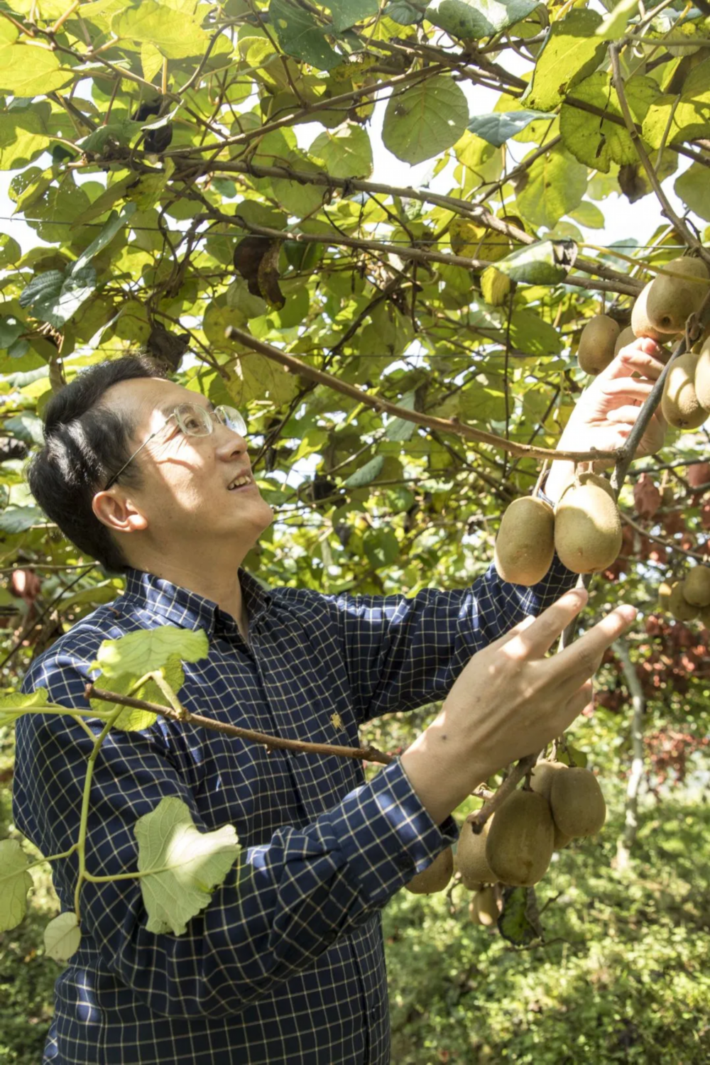 2018年,十八洞村第二任扶贫工作队长石登高在十八洞村的猕猴桃产业基地查看猕猴桃长势 新华社发