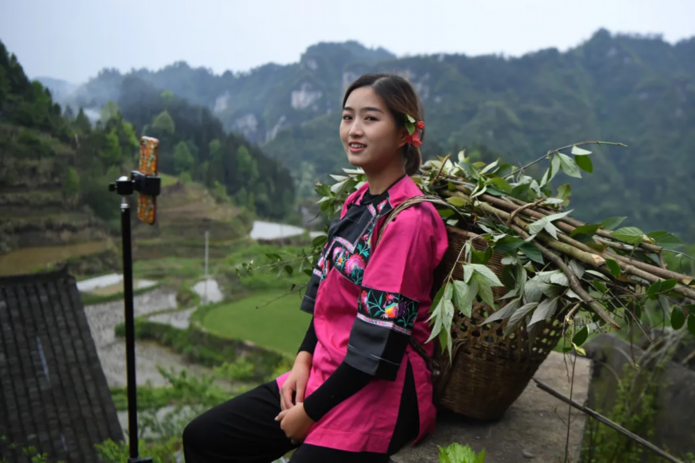 4月23日,在十八洞村拍摄的返乡创业做直播带货成“网红”的大学生施林娇 新华社记者薛宇舸 摄