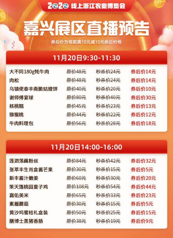 攻略四:直播五折秒杀!11月20-24日嘉兴展区每天两场直播(9:30-11:30和14:00-16:00),推介优质嘉兴好货!