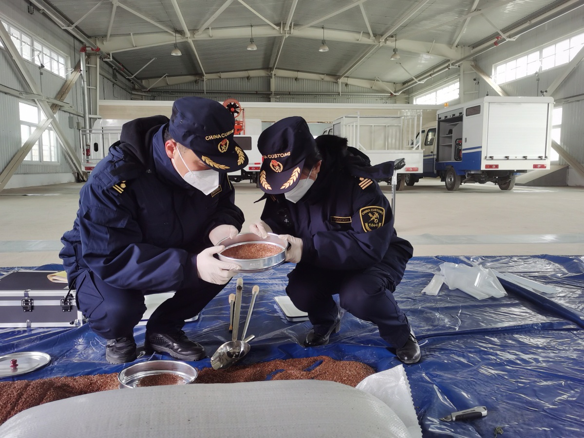 据兰州海关所属金城海关工作人员介绍,该批进口亚麻籽产地为哈萨克斯坦,由集装箱通过中欧班列运输,共42箱约1113吨,从阿拉山口口岸入境后转关至金城海关进行查验放行。