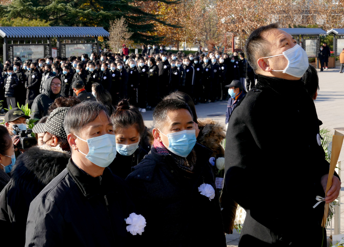 11月27日,在北京八宝山东礼堂,社会各界人士参加著名舞蹈表演艺术家陈爱莲遗体告别仪式。(中国日报记者 邹红 摄)