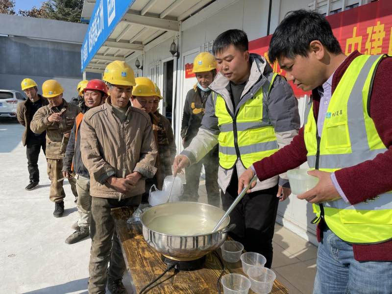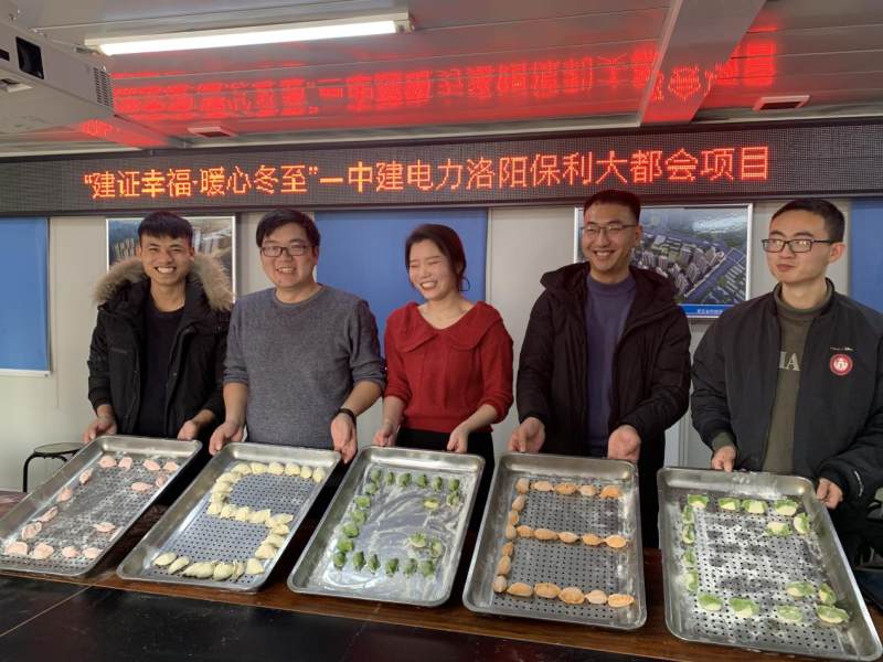 “建证幸福”、“廉洁”、“CSCEC”......12月21日,中建电力陕西分公司洛阳保利大都会项目的食堂里,各色各样的饺子拼图摆满了案板,项目员工们都围在四周,有说有笑的鼓捣着,场面一片温馨。为了迎接冬至,缓解员工年底工作压力,洛阳保利大都会项目举办了一场别开生面的饺子创意拼图大赛,各部门都派出了自己的能工巧匠,平日里一向与钢筋水泥混凝土打交道的铁汉们,此时面对揉面擀皮、包饺拼图这些细致活也毫不逊色于女员工,不一会儿案板上就开满了“饺子花”。“'我爱中国'还差一点,那个红色饺子正好合适。”“这个'CSCEC'图案是不是可以再大一点。”“找两个黑豆摆上去,小熊猫就成了”......饺子拼图环节同样精彩纷呈。活动最后项目全员们围坐在一起,一边唠家常一边吃着自己做的水饺,每个人脸上都带着温暖的笑容,幸福的感觉一步到“胃”。