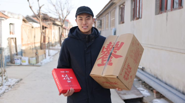 陈莹坤迅速整合了胡萝卜、生姜、水果萝卜等莱西时令特色农产品。目前,“新年上上签·年味包裹”蔬菜礼盒已经上线,通过新媒体直播方式帮助农户打开销路。
