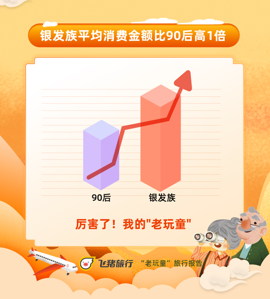 别以为老年人只能宅家、带娃、广场舞,飞猪数据显示,过去一年银发族平均旅行2.7次,平均消费金额同比增长17%。