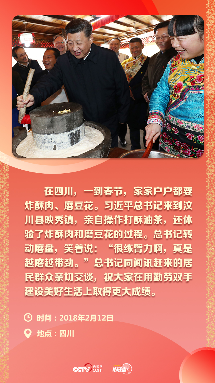 党的十八大以来,每到春节前夕,习近平总书记总是带着心中牵挂,深入到群众当中拉家常、问冷暖、听民声、送祝福。用老百姓的话说,“总书记没有一点架子,到家里就跟走亲戚一样”。