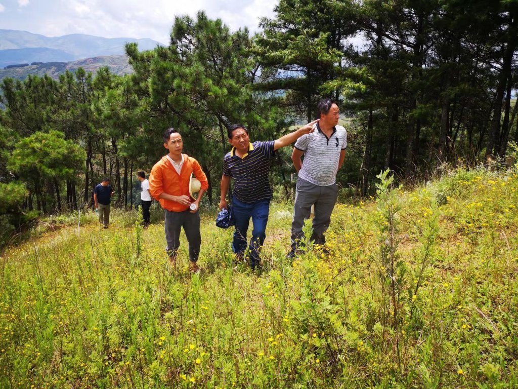 周力(左一)入村调研皆惹村自然资源情况