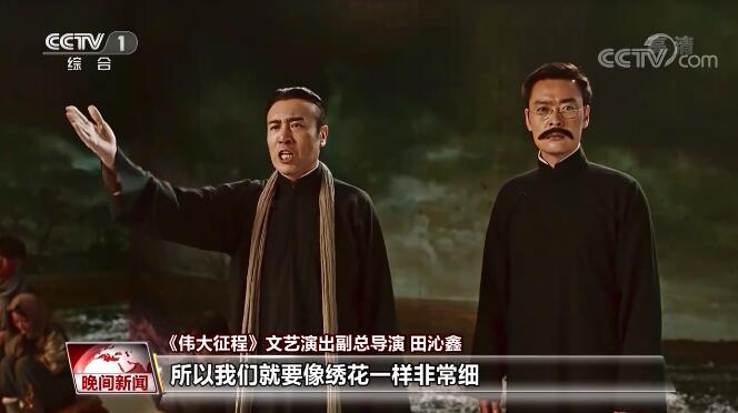 《伟大征程》文艺演出副总导演 田沁鑫:这么大的屏上,画面里面的内容不能有任何瑕疵,我们要像绣花一样非常细。用即时拍摄的这种方式,也是晚会形式所能接受的方式,我们最好的方法就是即时拍摄、即时现场剪辑。