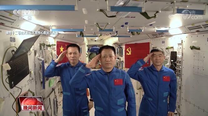 在5G技术支持下,神舟十二号的3名航天员聂海胜、刘伯明、汤洪波从太空发来祝福,祝中国共产党生日快乐。