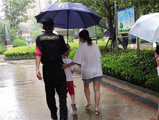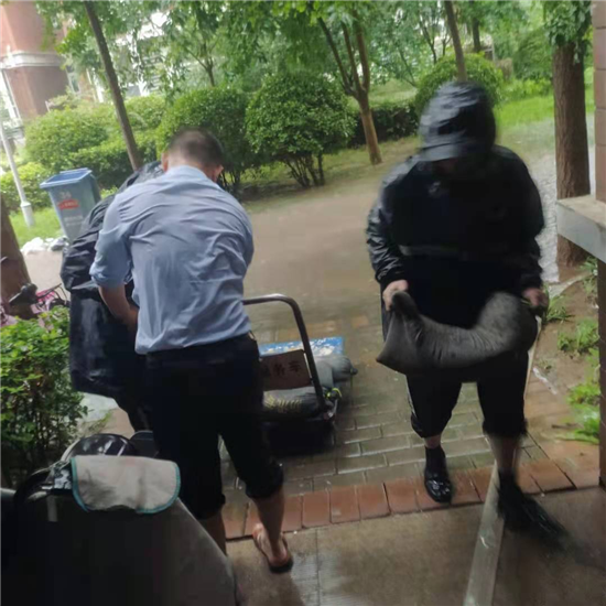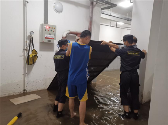 面对暴雨的强势来袭,绿都物业人全然不顾大雨的冲刷,在遭遇断电、断水、断网的情况下,与时间赛跑,24小时全天候待命,投入到抢险救援中,无论汛情如何凶猛,绿都物业始终站在防汛前线,攀爬至各处楼顶、墙壁,检查存在的安全隐患;躬身水里,紧急疏通下水管道;搬运防汛沙袋,堵住洪水前进的道路;为业主送上一把伞,把他们安全护送回家......