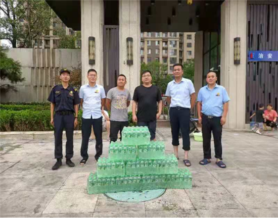 看到物业如此辛勤的付出,业主们也尽自己所能,为物业一线人员送去瓶装水和食物,让抢险的绿都物业人在暴雨的肆虐中感受到温暖与共的力量。